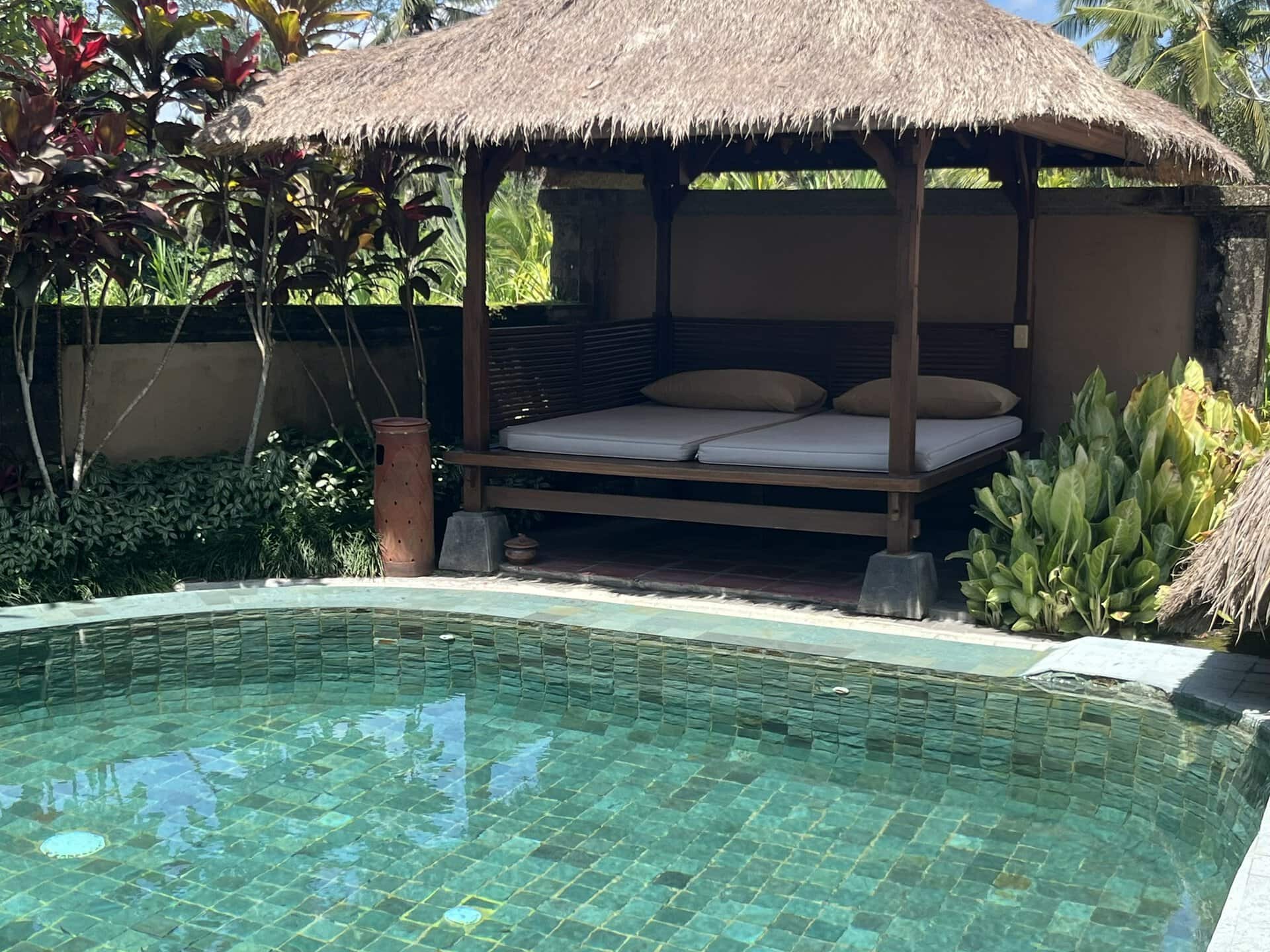 Neben Restaurant und Bar gibt es einen schönen und exklusiven Poolbereich. Es ist ein absolut hervorragendes Hotel für die Gäste, welche unaufdringlichen Luxus lieben. Nahe Ubud-Zentrum.